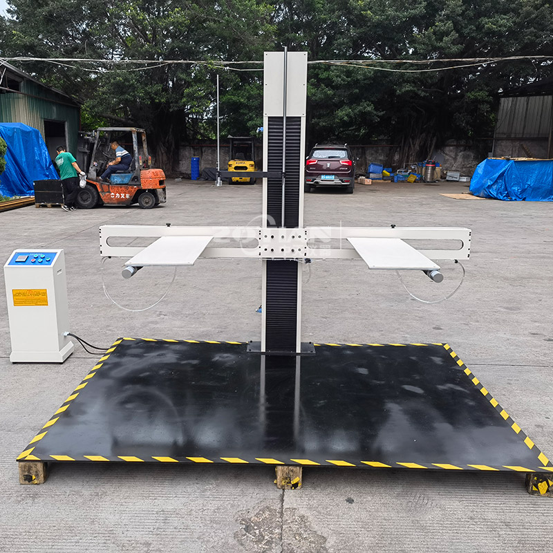 大型電動調寬跌落試驗機,主要滿足運輸條件下產品包裝承受的能力,從而改進、完善包裝設計。跌落試驗機,采用雙柱道向、彈簧緩沖、高度標尺指示,工作穩定可靠,可實現棱、面、角跌落,滿足GB/T4857.5-92、ISO2248-1972(E)之標準。